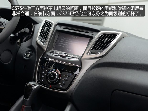 用料方面,CS75采用的全部為硬質材料,對于這個級別來說,也屬于主流表現。對于細節的做工方面,挑不出什么明顯的瑕疵了,按鍵、旋鈕的阻尼感也非常合適。