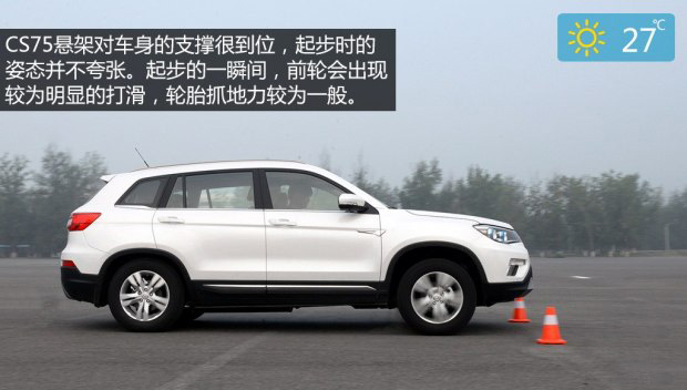 在剎車測試中,CS75的懸架對于車身的支撐表現出色,懸架將車身穩穩的拉住,并沒有出現過于嚴重的點頭。最終成績為42.93米,離我們認為優秀的范圍還差了一點點,整體表現中規中矩。