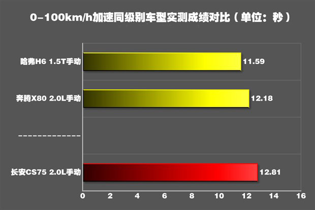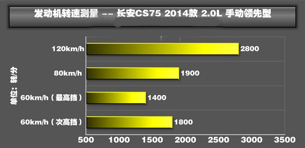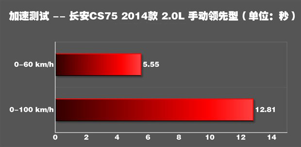 CS75的0-100km/h最終加速時間為12.81秒,發動機的動力在日常使用中,感覺還是不錯的,但在測試中,感覺掛入2擋之后的動力輸出顯得有些一般,發動機達到中高轉速后,動力的輸出有些匱乏,所以加速的后半段變得比較平緩。這樣的表現,我覺得還是因為它的變速箱1擋和2擋之間的齒比相差比較大造成的。