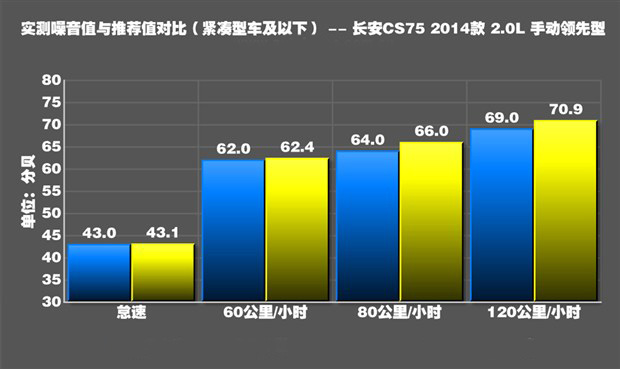 CS75的噪音表達到了該級別應有的表現,在同級別車型中屬于主流的水準。由于它的車身較大,高速行駛時,風噪會比較明顯。發動機噪音控制得不錯,2500rpm以內不會有過于明顯的噪音傳進車內,絕大多數的雜音還是來自風噪,這也使得它的噪音表現超過了我們的推薦值。