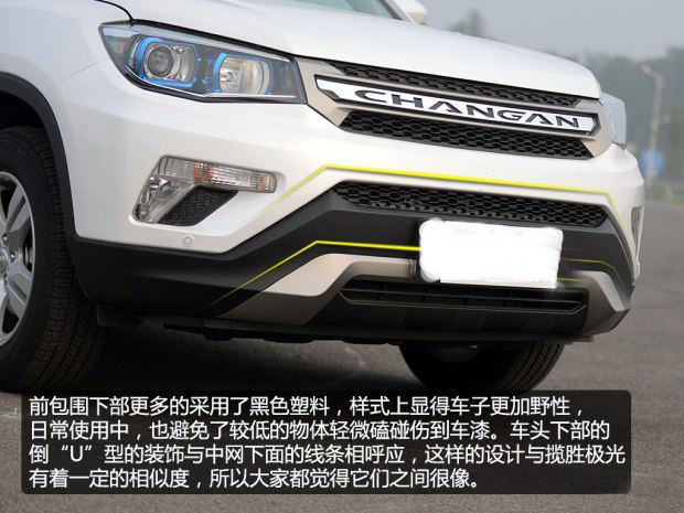 外型上,CS75已經征服了不少人,當然,也包括我。或許有人會覺得它多少有些像攬勝極光,我覺得主要還是因為它前包圍上的銀色裝飾條和攬勝極光非常接近,所以讓大家有了這樣的感受。不過,它們相似的只是前包圍部分,而大部分的地方,CS75還是有著自己主導性的,它的外形也上足夠吸引人,我覺得可以給出優的評價級別。