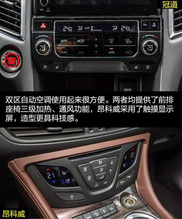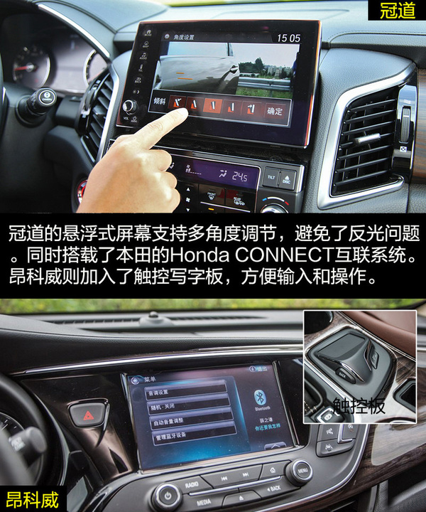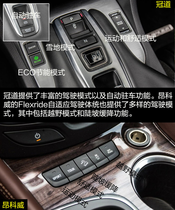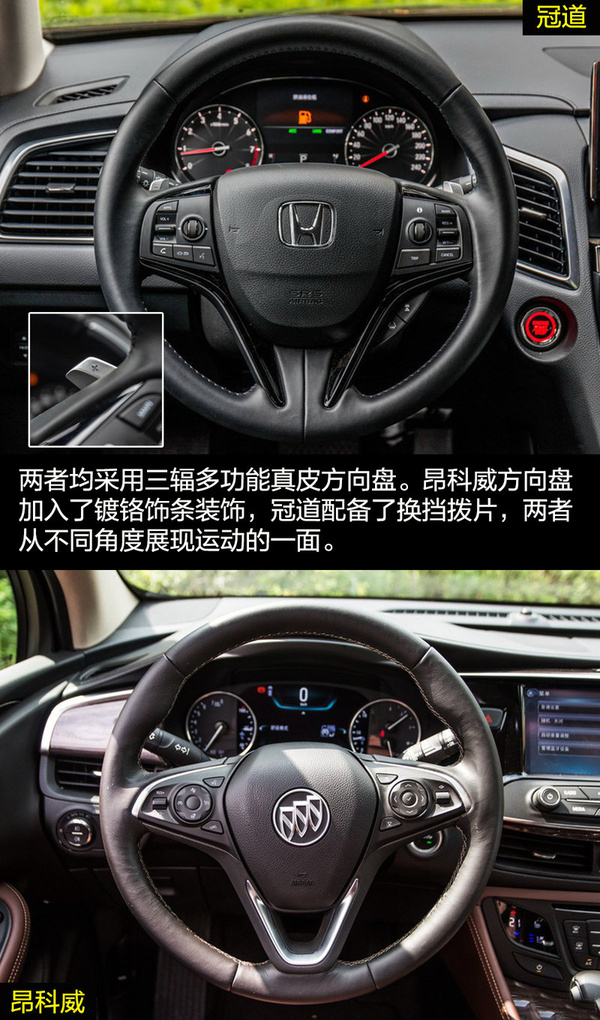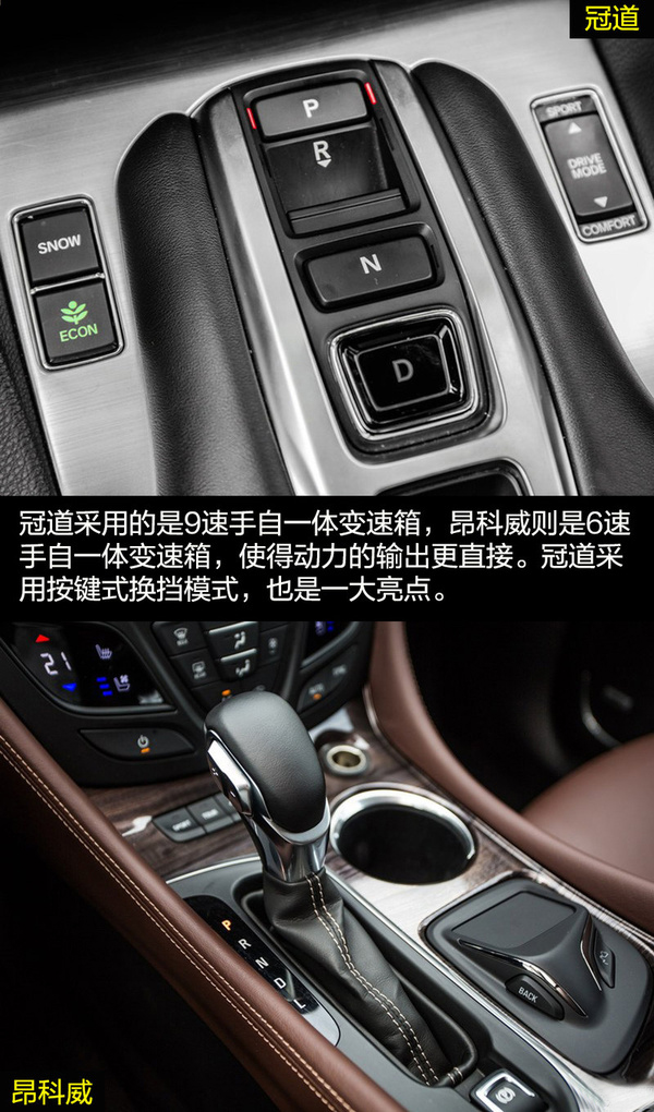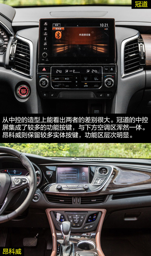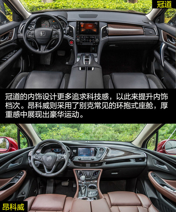 兩者在內飾的設計上走的還是家族式的風格。冠道的懸浮式中控大屏加上多功能方向盤,依舊科技感十足。深色的木紋飾板讓內飾多出了一份商務氣息,顯得挺有檔次。昂科威則依舊展現著美式奢華,環抱式中控給人厚重沉穩的感覺,中控臺流線的造型展現出充滿活力的一面。