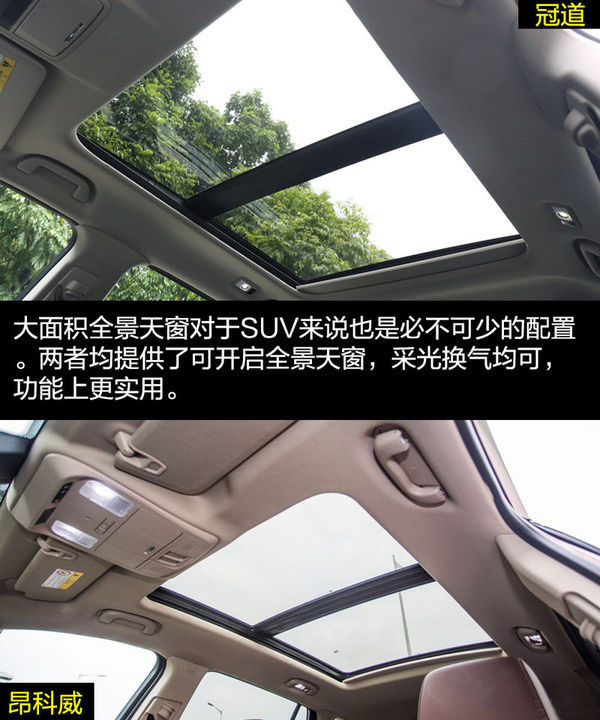 外觀配置方面,可以說兩者各有千秋,畢竟對比的雙方都是高配車型,配置上都是很豐富的。冠道采用的是LED大燈,比昂科威的氙氣大燈更帥氣。而昂科威提供了隨動轉向大燈功能、后備廂感應開啟功能,科技感更強。