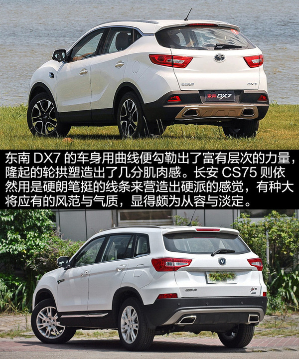 兩車的尾部造型依然是不同的路線,DX7豐富的線條勾勒出了肌肉感,而CS75則是沉著穩重的淡定大哥范。