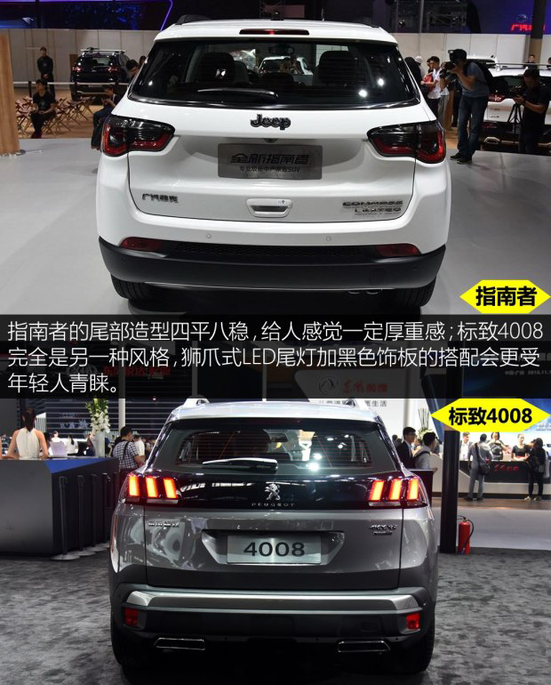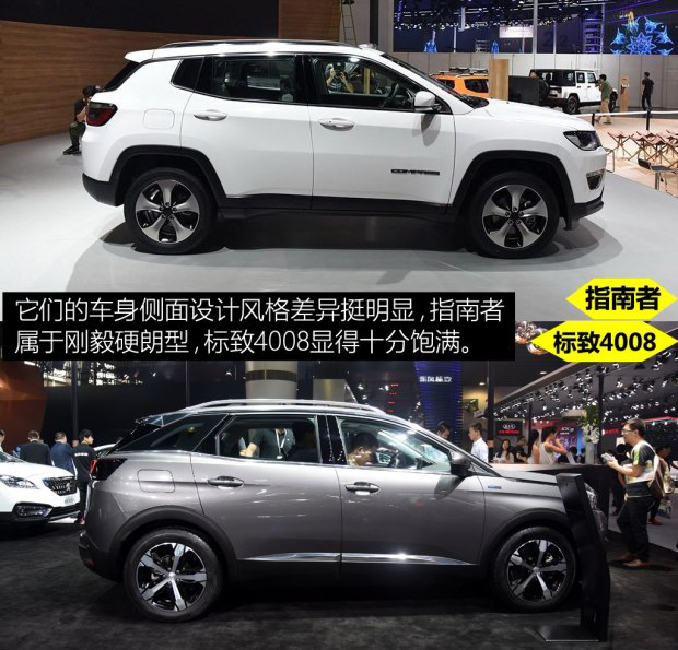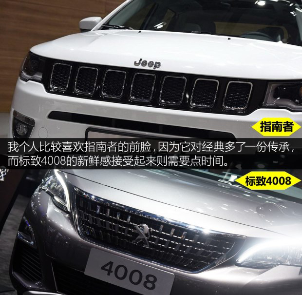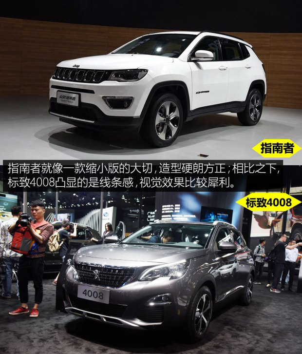 【SUV中國網】今年的合資緊湊型SUV市場又添兩款重磅車型,一款是剛上市的東風標致4008,另一款則是在廣州車展亮相的廣汽菲克Jeep指南者。為什么會把它們放在一起PK呢?首先,它們作為新車具有較高關注度;其次,指南者在公布預售價后(17萬-24萬),我們發現這兩款車型的價格區間有部分交集,因此存在一定競爭關系。與此同時,我們也知道指南者和標致4008在這個細分市場里都算是比較個性的存在,相信同時關注這兩款車型的朋友也不在少數。所以,在雙方尚未正式交鋒時(指南者還沒上市),我們不妨先初步了來檢驗一下它們的實力。(注:由于指南者尚未上市,所以此次在配置方面不進行詳細對比,重點放在設計、乘坐空間和儲物空間等硬性指標上。)