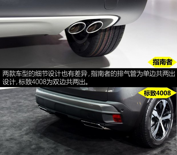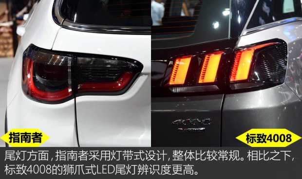 指南者的尾部設計確實比較常規,不妨試想一下,如果換一種風格也未必合適它,就這樣吧,低調不張揚也挺好。標致4008的車尾造型跟308有相似設計,但整體要更前衛大膽,辨識度非常高。