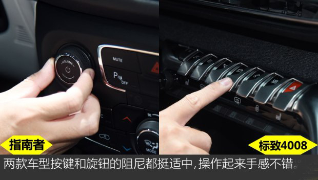 兩款車型的中控設計和外觀的風格都比較接近,指南者依然展示了自己穩重的一面,而標致4008則充滿未來感,這大概符合年輕消費者的心理,有個性就行了。至于細節做工以及用料方面,指南者和標致4008都表現出這個級別該有的水準,沒有什么可挑剔的地方。