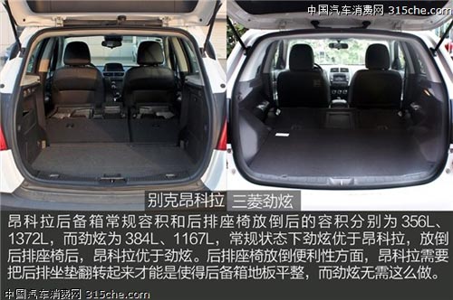 乘坐空間和小儲物空間的比較中,昂科拉都要比勁炫優(yōu)秀,不過在后備箱的使用便利性、備用輪胎方面,昂科拉就不如勁炫了。