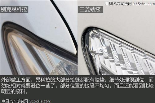 外部做工方面,勁炫相比昂科拉要遜色一些,昂科拉的接縫小而均勻且配有膠墊,細節(jié)處理很出色,而勁炫接縫比較大,部分位置接縫不均勻,而且還能看到廢料的身影。