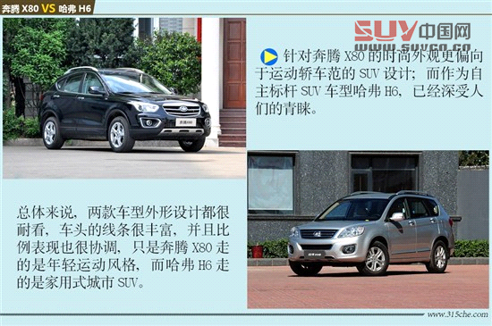 這次我們選的這兩款自主SUV車型,分別是奔騰X80和哈弗H6。更多是注重日常使用,而不是用于郊外“撒野”的玩具。