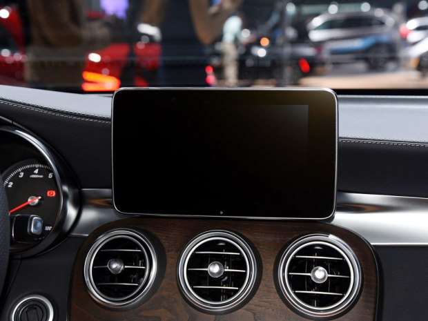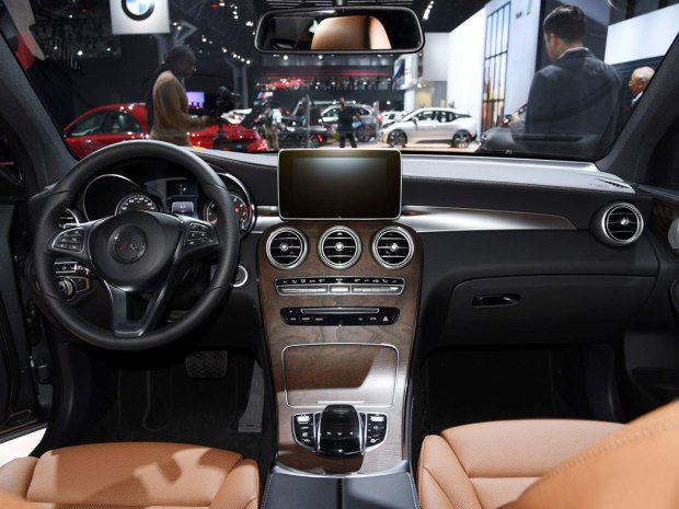 新車內飾部分與國產的GLC基本無異,其中控臺運用了木紋飾板以及黑色皮革包裹,整體質感以及豪華感均有著較高的水準。不過由于其車頂下滑式的設計,我們預計其后排頭部空間相比GLC將有一定減小。