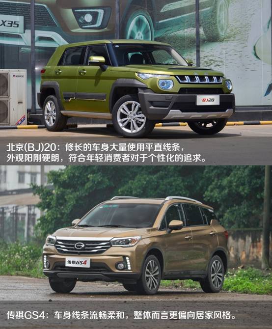 現(xiàn)如今,80后業(yè)已成熟,90后也逐漸走出象牙塔,步入社會,這些都市的型男素女正成為車市中最具活力,也最不可忽視的一股力量。對于這個(gè)全新崛起的年輕消費(fèi)群體而言,SUV因?yàn)榧骖櫝鞘型ㄇ诤蛻敉獬鲇蝺纱蠊δ芏鴤涫芮嗖A,尤其是A級SUV,既有SUV車型的特點(diǎn),在價(jià)格方面也具備相對優(yōu)勢,已經(jīng)成為他們購車的新趨勢。但是,在當(dāng)前市場上A級SUV車型眾多,龍魚混雜,到底哪一款能讓這些年輕消費(fèi)者心動,并真正承擔(dān)得起他們的實(shí)際需求呢?今天,小編特意選取了兩款頗具實(shí)力、市場關(guān)注度較高的買車必看車型——北京(BJ)20和傳祺GS4,看顏值、比配置、拼實(shí)力,看看誰才是大家心目中的最佳選擇。