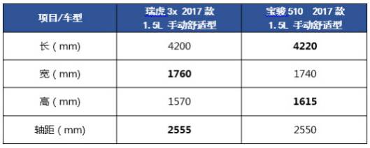 兩款車型同為1.5L發動機,寶駿510在功率和扭矩賬面數據上略勝一籌,采用6擋手動變速箱;在日常用車考慮更為重要的綜合油耗和油箱容積方面,瑞虎3x則以更加省油和油箱容積較大的優勢扳回一城; 同時,瑞虎3x最小離地間隙186mm也使這款車的通過性明顯優于同級。
