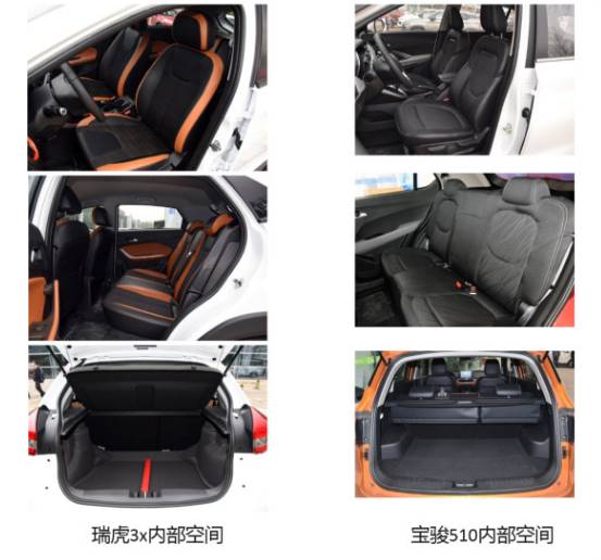 瑞虎3x外觀、內飾的風格都更為時尚、更具有運動氣息,更加符合年輕消費者的喜愛,超寬車身和超長軸距確保了車內乘坐空間的舒適性,內飾采用的科技環保材質為消費者提供了更為舒適、環保的駕乘空間;寶駿510的外觀內飾設計都更為中庸、樸實;兩款車型后排座椅均可以整體放倒,內部空間方面兩車的空間都在小型SUV車型中都屬于比較有優勢,能夠滿足此類車型消費者的普遍需求。