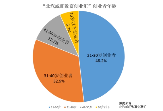 在北汽威旺搜集的36萬(wàn)創(chuàng)業(yè)者中,21-30歲年輕人(85/90后)占比達(dá)到48.2%,位列第一,而31-40歲人群排名第二位。