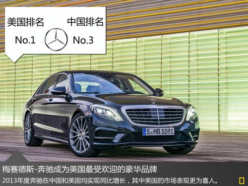 僅從美國市場來看,戴姆勒旗下梅賽德斯-奔馳成為該市場2013年最熱銷的品牌,全年累計銷量達312,534輛,同比提升14.0%。相比美國市場上,奔馳在華的銷量仍有一定差距,但也實現了同比11%的增長,累計銷量近23萬輛,成為在華銷量位居第三的豪華品牌。