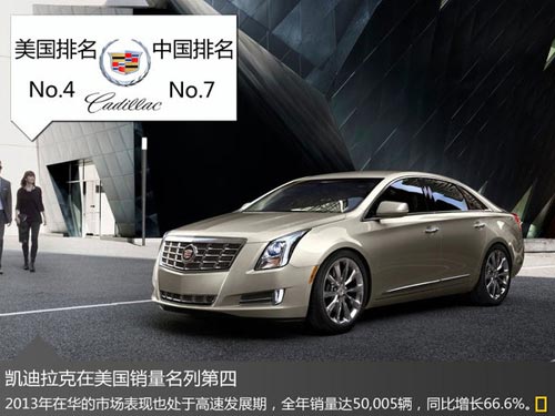 凱迪拉克作為土生土長的美國豪華品牌,同時也是美國車企中銷量最好的本土品牌。2013年累計銷量達到182,543輛,同比增長21.9%。但這一成績相比排名第三的雷克薩斯有著依然有著很大差距。凱迪拉克在中國市場的表現與美國市場相去甚遠,累計銷售50,005輛,同比增長66.6%,尚不足美國市場的1/3。