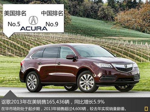 專為美國市場打造的謳歌品牌,在2013年銷量達到165,436輛,同比增長5.9%,成為僅次與雷克薩斯的日系豪華品牌。在全球第一大汽車市場的中國,在產品影響力方面并不及美國這般根深蒂固,接受度和認可度依然有待普及。盡管如此謳歌也在去年迎來在華的快速發展,在華銷售實現銷量翻番,銷量超過4,600輛。