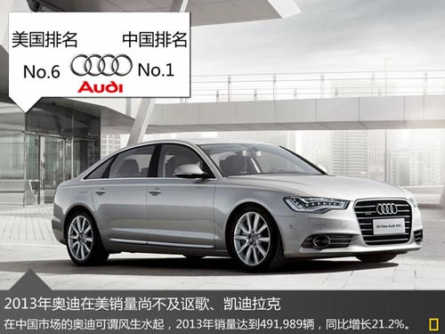 德系豪華品牌奧迪2013年銷量達到158,061輛,同比增長13.5%,雖然有著增長的趨勢,但相比奔馳和寶馬兩大品牌,奧迪在美國的銷量成績卻并不盡如人意。反觀在全球第一大市場中國,奧迪銷量成績相比美國翻了3倍多,累計銷量達到491,989輛,同比增長21.2%,成為2013年在華豪華品牌的銷量冠軍。