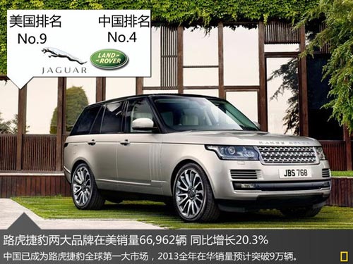 2013年英國兩大豪華品牌路虎捷豹在美國市場的銷量有著大幅增長,全年兩大品牌累計銷售66,962輛,同比增長20.3%。目前的中國已成為路虎捷豹全球最大的單一市場,僅今年1-11月累計銷量已達到83,499輛,同比提升28.2%。雖然路虎捷豹2013在華累計銷量目前尚未公布,相信該數字突破9萬輛大關應無任何懸念。