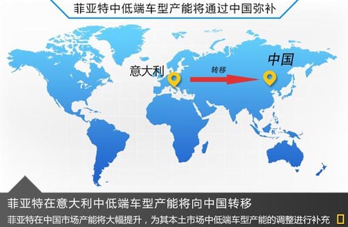 由于歐洲汽車市場的表現低迷,作為菲亞特全球的主要戰場致使集團銷量持續下滑,該汽車公司也曾表示:銷量下滑的局面并沒有停止的趨勢,這對我們造成了非常不利的影響。因此菲亞特對未來產銷站略進行調整,將其位于意大利的米拉菲奧里工廠進行改造投產包括瑪莎拉蒂在內的高端產品,提高利潤,也因此其在本土的中低端產品則有望減產。對此菲亞特-克萊斯勒集團首席執行官馬爾喬內表示,菲亞特利用意大利工廠生產高利潤品牌車型,目前已經初見成效。而由此帶來的中低端車型產能下降的情況,將通過中國地區產能的增加來彌補,從而在發展前景更大的國內市場,通過本土化生產實現銷量的增長。目前菲亞特在國內長沙一座已投產的整車工廠,一期年產能14萬輛,而廣汽菲亞特執行副總經理王景秋則表示,今年廣汽菲亞特的產能將達到21萬輛。同時根據菲亞特的產能規劃,隨著未來番禺第二工廠的建成,未來在華年產能將達到50萬輛。