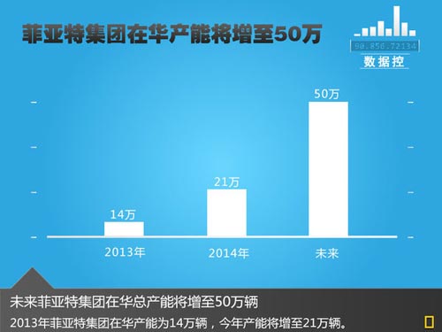 目前菲亞特集團在中國已有長沙和番禺兩座生產基地,其中長沙工廠已建成投產,一期產能14萬輛,二期產能則將達到30萬/年。另外位于廣州番禺的第二工廠則將在2016年正式投產,預計產能則為16萬輛/年。同時根據菲亞特集團的規劃,未來其將在華實現50萬輛的總年產能。