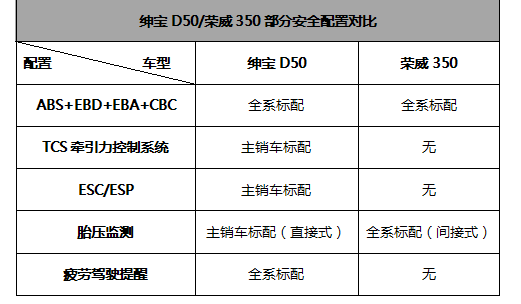 暑期適逢孩子臉的夏季,旅途中難免會遇上不期而來的陰雨天氣,進而引發道路濕滑,此時,像行車輔助系統就非常必要了,它可以有效防范你的車輪打滑,確保出游安全。這方面,榮威350雖全系未配備車身穩定系統,但有ABS+EBD+EBA+CBC的四大功能為出游護航。紳寶D50更加厚道,除最低配車型外全部擁有ESC,配置水準甚至超越B級車,能很好保證雷雨天時的出游安全。