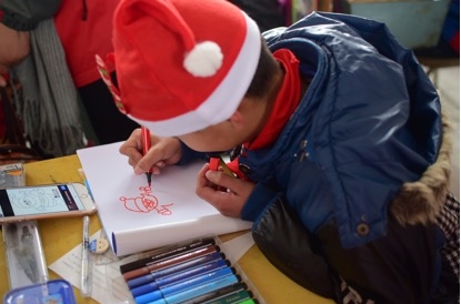 拿著彩筆,以圣誕為主題,小朋友們描繪著對于心中圣誕節的定義,以簡單的一抹色彩描述出斑斕的夢想;描繪出對生活的感恩之心。更領到了來自全國各地關心、愛護他們的愛心人士寄來的禮物。而孩子們臉上也綻放出久違的、幸福的笑容。