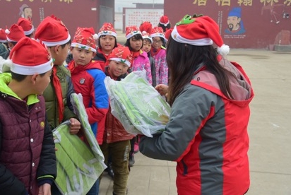 結束了重慶站、河南站的行程,12月25日,野馬e族慈善公益行的腳步踏上了燕趙大地。在車隊距離學校還有十幾公里的路上,陰霾的天空忽然飄起了零星的小雪,若隱若現,打在車窗,就像引領著整個車隊篤定向前的腳步。當天正值圣誕節,野馬e族為孩子們帶來不少圣誕的小禮物:圣誕帽、蘋果、貼畫……從沒體驗過圣誕節的孩子們,帶著圣誕老人的帽子,捧著包裝精致的蘋果,孩子們顯得好奇又興奮,凍得紅撲撲的小臉蛋洋溢著炙熱的笑容,簡單的小禮物成就了大大的滿足感,這一刻,孩子們在心中許了個虔誠的小心愿。
