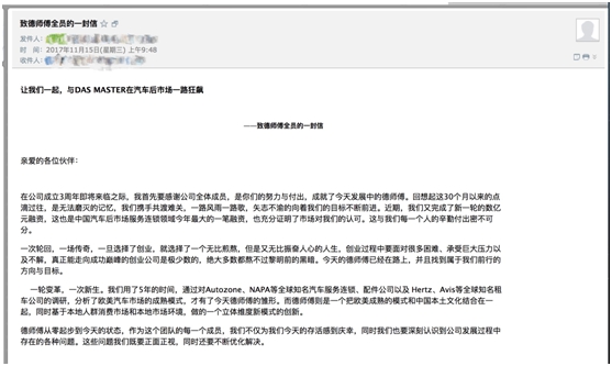 同時,信中還提到,德師傅在完成了新一輪數億元融資之后是目前中國汽車后市場服務連鎖領域融資能力最強的企業。