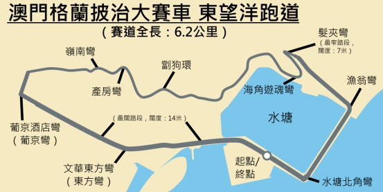 作為全新賽季的第二站,澳門(mén)是四站中唯一的街道賽。全長(zhǎng)6.2公里,向以“難度和樂(lè)趣比翼、榮耀與歷練同在”著名、被譽(yù)為“死亡賽道”的澳門(mén)東望洋賽道,地勢(shì)曲折起伏,有上下斜坡、彎角、直路,跑道彎角多,賽道兩側(cè)亦不乏欄桿、山崖和水泥墻等危險(xiǎn)點(diǎn)位,不僅賽道質(zhì)量和難度系數(shù)不負(fù)“東方摩納哥”之譽(yù),整個(gè)賽道更包含了高速的直路和迂回的急彎,被公認(rèn)為世界上對(duì)賽車(chē)手要求最高的賽道之一。