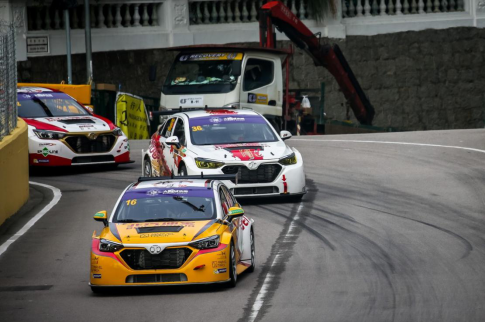 事實(shí)上,這場(chǎng)巔峰對(duì)決也確實(shí)驚心動(dòng)魄。總共十圈的比賽在首圈就發(fā)生了一起較為嚴(yán)重的事故。重慶永川元臻車(chē)隊(duì)陸淦在出彎側(cè)滑后沖向外側(cè)護(hù)欄,賽車(chē)橫在賽道中間給后方部隊(duì)造成混亂并引發(fā)擁堵,從而導(dǎo)致比賽暫停,更有不少車(chē)手在第一個(gè)彎后就告別了今年的澳門(mén)戰(zhàn)場(chǎng)。