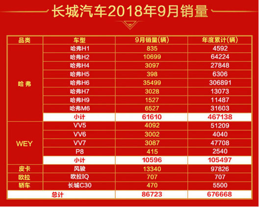 “機會總是留給有準備的人”,這句話用在汽車市場最合適不過了。雖然大家都意識到了今年大環境的寒冷,但“金九”成色差成這樣還是出乎很多人的意料。不過長城汽車顯然屬于提前做好準備的人,9月其銷量超過8.67萬輛,環比大漲35%。