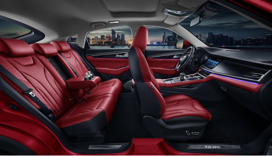 內(nèi)飾方面,駕駛艙整體采用星際駕艙式設(shè)計(jì),座椅全部覆以高品質(zhì)Nappa皮。主副駕艙采用立體環(huán)繞空間設(shè)計(jì),除了真皮包裹的部分外,其余部位均用鋼琴烤漆鋪面。中控區(qū)大尺寸液晶屏搭配可觸控按鍵,下方游艇式換擋手柄采用黑王蛇真皮包裹,彰顯低調(diào)奢華。