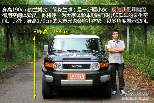 接下來(lái)就到了越野時(shí)代開篇文章的重頭戲:空間體驗(yàn)部分。一般的空間體驗(yàn)文章 都喜歡用高個(gè)兒模特,大空間的車這樣搞自然是沒問(wèn)題的,因?yàn)楦邆€(gè)兒都能坐得舒服的話,一般人對(duì)空間絕對(duì)不會(huì)不有什么意見。但高個(gè)兒如果坐不進(jìn)去呢,我們普 通人該怎么參考?鑒于這種情況,我們導(dǎo)購(gòu)組做了個(gè)小創(chuàng)新,采用了身高為190cm的蘭博和身高為170cm的大志為大家組合呈現(xiàn)這9款SUV的乘坐空間。(由于9款車中只有普拉多和帕杰羅有第三排座椅,而且連大志都坐不下,故我們就不浪費(fèi)篇幅加入第三排空間的體驗(yàn)了)