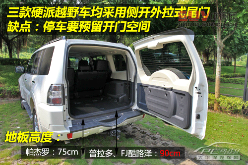 另外,在上面的圖中我們還測(cè)量了尾門最低開口的離地高度,普拉多、FJ酷路澤這兩款豐田硬派SUV當(dāng)仁不讓地成為離地最高的得主,在搬運(yùn)較重物品時(shí),這兩款車的車主估計(jì)得多費(fèi)點(diǎn)勁兒。城市SUV里面最高的是SRX,80cm的離地高度比要對(duì)手們要高出一截兒,搬家的時(shí)候可別先選它。