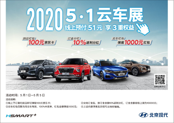 考慮到消費(fèi)者在疫情期間對(duì)安全購(gòu)車的顧慮,北京現(xiàn)代精心打造了一場(chǎng)線上云端車展,消費(fèi)者足不出戶就能云端逛車展,實(shí)現(xiàn)零距離看車的需求。這不僅是一場(chǎng)匯聚多款明星車型的汽車盛宴,也是一次千載難逢的購(gòu)車好時(shí)機(jī)。為了回饋消費(fèi)者對(duì)北京現(xiàn)代多年以來(lái)的支持與關(guān)注,北京現(xiàn)代還為大家準(zhǔn)備了數(shù)不盡的驚喜。
