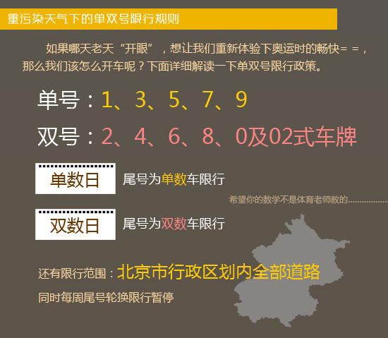根據16日通過的《北京市空氣重污染應急預案》,當北京市發布空氣污染紅色預警時,即預測未來持續三天出現嚴重污染時,機動車將實施單雙號限行措施。