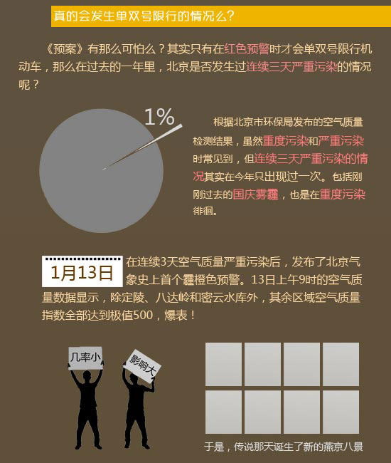因此,此次極端天氣下的單雙號限行的應急預案再度引發疑問。如此大規模地限行,對于治理空氣污染的效果到底有多大?北京市擁有數百萬私家車主,涉及如此廣泛人群的公共政策,是否應聽取公眾意見?很多人住在城外,開車上下班,遇上單雙號限行,他們的交通問題怎么解決?