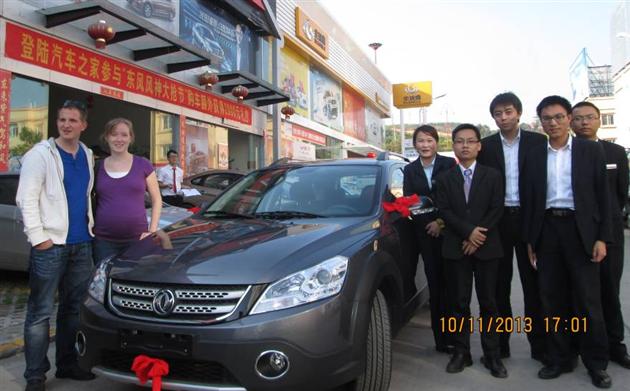 (圖為美國夫婦國慶節后在東風風神云南楚雄店提車留念合影)