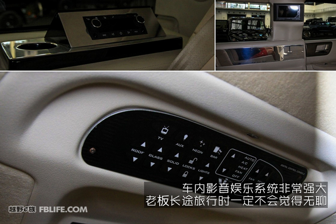 后排空間更是足夠上檔次,無處不在的真皮、無處不在的實木填滿了整個車廂。兩個老板座椅面前是巨大的液晶電視,四周也加裝了強大的多媒體影音系統,盡一切可能帶給車主媲美影院的視聽感受。