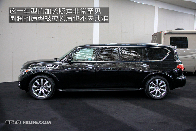 在中國市場,加長QX80是非常少有的,以至于當幾臺加長版車型被擺在一起時,第一個吸引到我注意的反而是它。