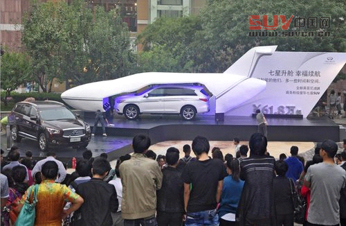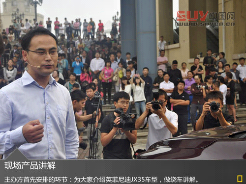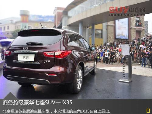 北京福瑞英菲尼迪主推商務(wù)艙級豪華七座SUV一JX35于9月13日起在北京市朝陽區(qū)藍(lán)色港灣索拉納中心廣場舉辦為期10天的英菲尼迪車展專場。當(dāng)我到達(dá)活動現(xiàn)場時,中心廣場的臺階上已經(jīng)擠滿了觀眾,大家都在翹首以盼,能夠有一次豪華商務(wù)艙版的親身體驗(yàn)。