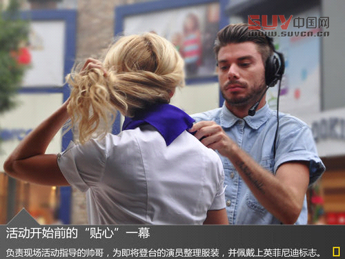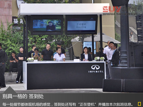 現(xiàn)場展臺的一切設(shè)計(jì)都經(jīng)過主辦方精心安排,簽到處的設(shè)計(jì),車型的展示,以及廣播里不斷播出英菲尼迪JX航班即將在十分鐘后起航的信息。主辦方都把現(xiàn)場完全變成了一個航站樓,觀眾們也有一種在候機(jī)大廳準(zhǔn)備登機(jī)的感覺。而此時表演者們也進(jìn)入最后緊張準(zhǔn)備階段,準(zhǔn)備通過精彩的表演為觀眾帶來非凡的視覺感受。