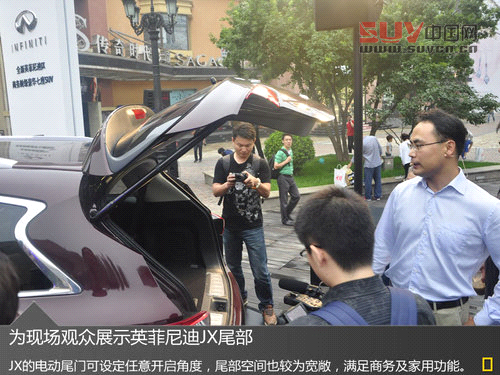商務(wù)艙級座駕JX35的車內(nèi),一切都體現(xiàn)了典型的英菲尼迪元素,內(nèi)飾設(shè)計(jì)風(fēng)格凸顯了這款車的奢華與高貴,中控臺部分采用桃木飾板與金屬邊框。JX35的分體式全景天窗,前面天窗自由開啟,后排天窗為兼顧第三排乘客,設(shè)計(jì)的面積很大。最后,JX產(chǎn)品負(fù)責(zé)人還為大家親自演示了電動車門各角度開啟的功能。