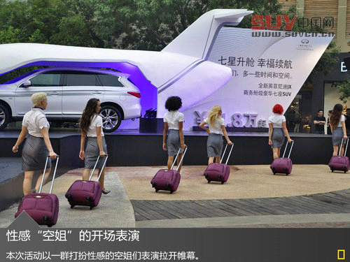 既然是一次高空心跳之旅,自然在表演中不可缺少的就是美麗的“空姐”。此次活動以6名美籍特邀空乘性感的開場表演拉開帷幕,英菲尼迪在8月宣布打造“最性感豪華汽車品牌”,而展臺上的JX車型搭配眾多美女,把這一品牌口號表現(xiàn)的淋漓盡致。