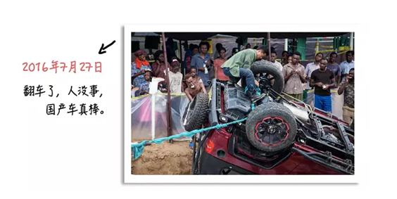 電影拍攝過程中,由于操作不慎,吳京乘坐的北京(BJ)40遭遇翻車。得益于超高強度防滾架的保護,吳京毫發無傷,順利從車內爬出后,扶正車輛,發現車架完全沒有變形,車頂沒有任何塌陷,只需經過簡單修復即可繼續使用。攝制組沒有因為翻車事故而耽誤正常拍攝,吳京的那句“翻了車,人沒事,國產車!強”成了2017年夏天最熱的金句,北京(BJ)40的優秀品質也隨之流傳開來。
