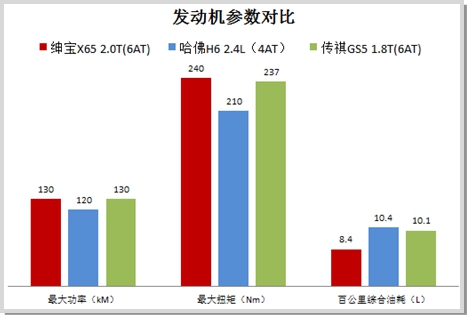 紳寶X65在產(chǎn)品優(yōu)勢上的優(yōu)勢,早已讓對手們慌了陣腳。例如,SUV市場銷量冠軍哈弗H6搭載有1.5T發(fā)動機和2.4L發(fā)動機,不論是功率還是扭矩,比紳寶X65都差一個數(shù)量級。而SUV的新秀傳祺GS5搭載的1.8T發(fā)動機雖然在參數(shù)上接近于紳寶X65,但這臺1.8T發(fā)動機搭載6AT變速箱的百公里工況油耗高達(dá)10.1L,比紳寶X65高出近2L,盲目追求參數(shù)讓傳祺GS5變成了“打腫臉充胖子”。