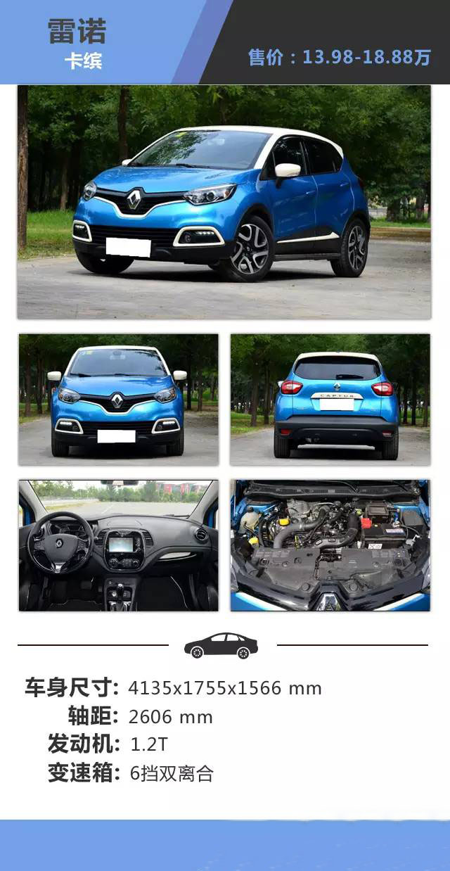 點評:卡繽的造型非常的個性可愛,相信會很受女生的喜愛,其前臉碩大的菱形標志非常的突出,白色飾條的包圍獨特新穎,同時還有同級別中少有的可以提供多種顏色搭配的車頂配色,基本上每臺車都獨一無二了。而中控的設計則相對平淡一些,大面積高光面板視覺效果很好,后期可能會變成指紋收集器,雖然只是一臺小型SUV,不過卡繽還是設置了很多的儲物空間,對于一些追求個性年輕家庭其還是不錯的選擇。