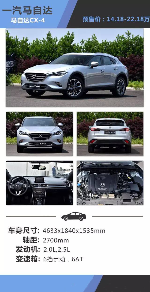 【SUV中國網】目前SUV市場上各種SUV的設計都是非常漂亮的,不過要說顏值最高的,這個時候XR-V應該會站出來說,這個頭銜應該是它的,不過隨著CX-4的預售開始,這臺頂著轎跑SUV的頭銜進去這個市場的時候,相信目前賣的很好的SUV都會一陣顫抖,大呼狼來了,那么是否真的如此呢?今天教授就來介紹幾款15萬之內顏值很高的SUV,看看他們能否與其相爭!